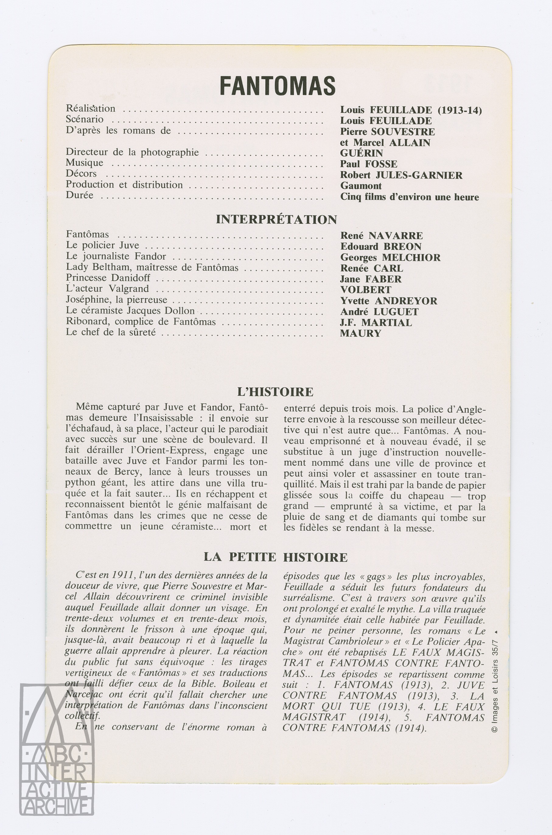 107c Louis Feuillade, Fantômas, 1913. MrCinema By magnolia | Published May 1, 2018 | Full size is 1814 × 2743 pixels 107b Louis Feuillade, Fantômas, 1913. MrCinema 107h Louis Feuillade, Fantômas, 1913. Images du Cinema Francais, 1945. Fbook
