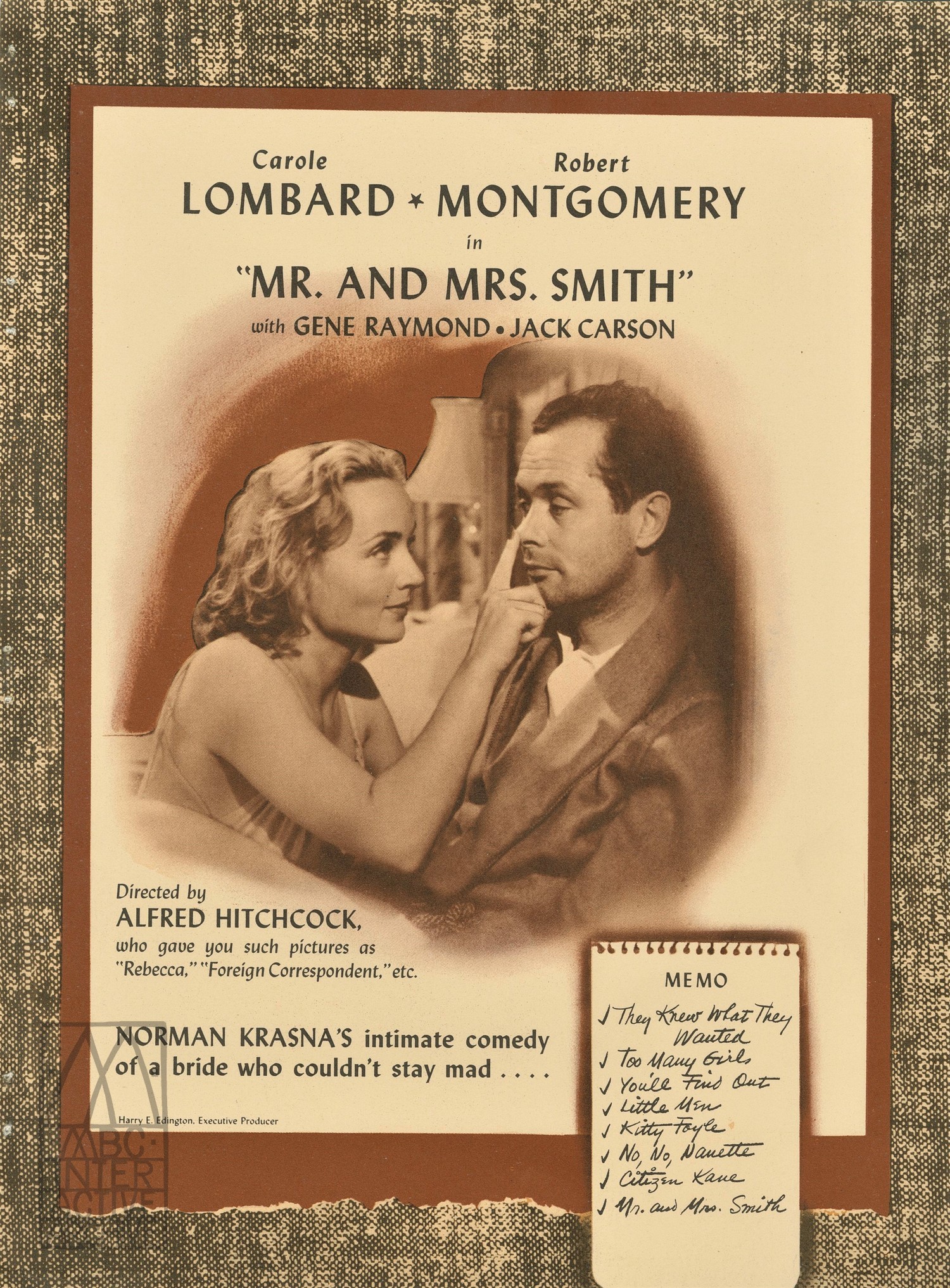 93c Alfred Hitchcock, Carole Lombard, RKO, 1941. USplanbook By webmaster | Published July 19, 2018 | Full size is 2689 × 3645 pixels 93 Alfred Hitchcock, Mr. _ Mrs. Smith, 1941. sh 94b Alfred Hitchcock, Joan Fontaine, Cary Grant, Suspicion, 1941. sh